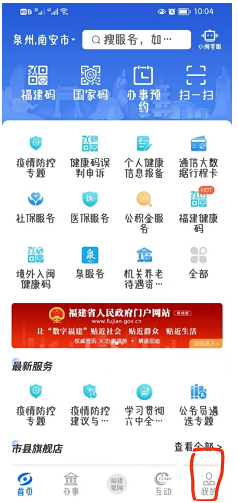 第一步,孩子父母各自打开闽政通,点击“我的”。